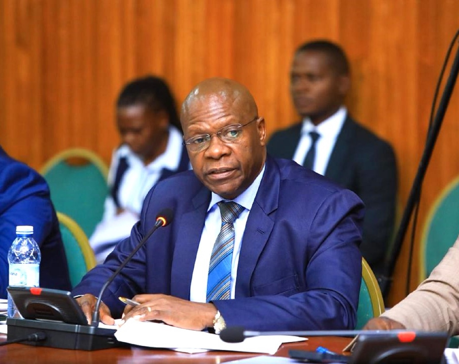 The Secretary to the Judiciary, Pius Bigirimana (L), and his staff before PAC (Central)
